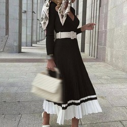Robe tricotée plissée à taille fine et col en v, tenue décontractée à la mode, noir, épissure, vêtements pour femmes, nouvelle collection, 2022