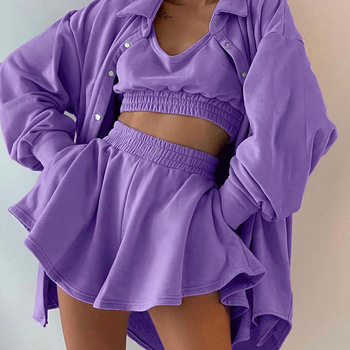 Женский спортивный костюм R30241S, комплект из двух предметов: рубашка в полоску с длинным рукавом и свободные мини-шорты с высокой талией, 2022